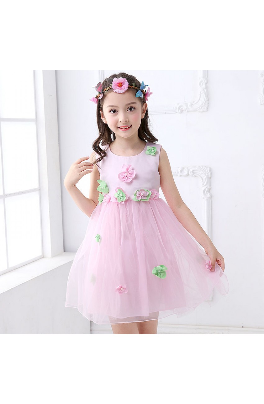 Little Big Girls Summer Embroidered Flower Dress Girl Pink Birthday Party Princess Laces Dress for Wedding